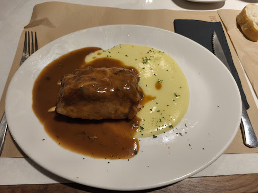 La cosa con el segundo plato solo hizo que empeorar. El rodaballo era de cuarta divisón porlomenos y el "solomillo" no era solomillo ni de coña y encima estaba mas seco que la suela de una zapatilla.