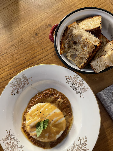 This was a truly wonderful pizza! We found the place on Top50 pizza website in the section of recommended restaurants. Too bad that it is not among the Top50 outside of Italy because it absolutely deserves it! The buratta with the almond and dried tomato paste was probably the best we have ever eaten. Delicious interesting combination. We had it with focaccia which we were a bit sceptical about at first because it looked like a classic sourdough bread.. but damn, so good! The pizzas deserve comment on its own. The dough was a bit more dense than typical napolitan dough, but had so much more flavour while still being super lightweight. Really really good. The tomato base was perfectly balanced. Could be even more runny but that is a matter of preference. Unfortunately, we were too full to try the famous chocolate cake. 🥺 The only downside was the room temperature - it was super...