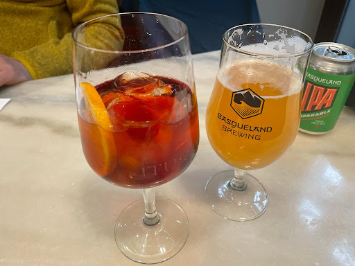 Read moreI had just arrived and had no clue where I was in relation to things I wanted to do. Stopped for a vino and then had a bite to eat. Delicious. For dinner I chose freshly made pintxos - went with the beef cheek, the foie with apple and a cheeky light risotto. Washed that down with yummy vino blanco and finished off with a coffee and vermut. As a solo traveller there was a lovely table for two that was near the front door that gave me the best view of both the interior and the tables outside under the impressive walkway/colannade. It was a lively introduction to...
