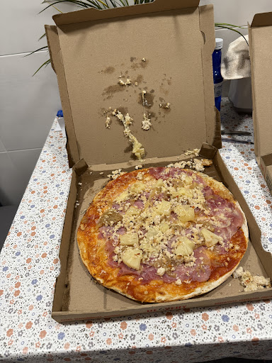 Read moreVeo muchos comentarios de gente diciendo que llegan frías (lo cual ya os aseguro que es algo muy típico en Donosti con prácticamente todo establecimiento que hace envíos a domicilio) y que llegan quemadas... He visto varias fotos, para mí no están quemadas. Una buena pizza debería de tener partes algo quemadas para darle sabor, pero bueno, esa es mi opinión. No son tradicionales aquí, los sabores van muy bien eso sí, pero la pizza a mí se me quedó a falta de más tomate en la base. El servicio fue rapidísimo y son muy amables los que...
