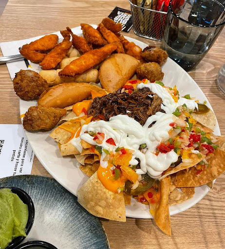 Por un lado pedimos el combo que lleva muchos de los entrantes para degustarlos. Los nachos, buenísimos y los tequeños también. Todo lo demás no lo volveríamos a pedir. En cuanto a las hamburguesas, el sabor de la carne y el conjunto están muy buenas, como siempre, pero una de las hamburguesas que probamos, la carne estaba bastante fría y el queso no se había derretido; me decepcionó un poco. La smash de sabor rica, pero la técnica peor que la ultima vez que la probamos, muy seca y bastante gruesa. En general, la experiencia fue buena, pero creo que le faltan aún algunos matices que mejorar para llevarse las...