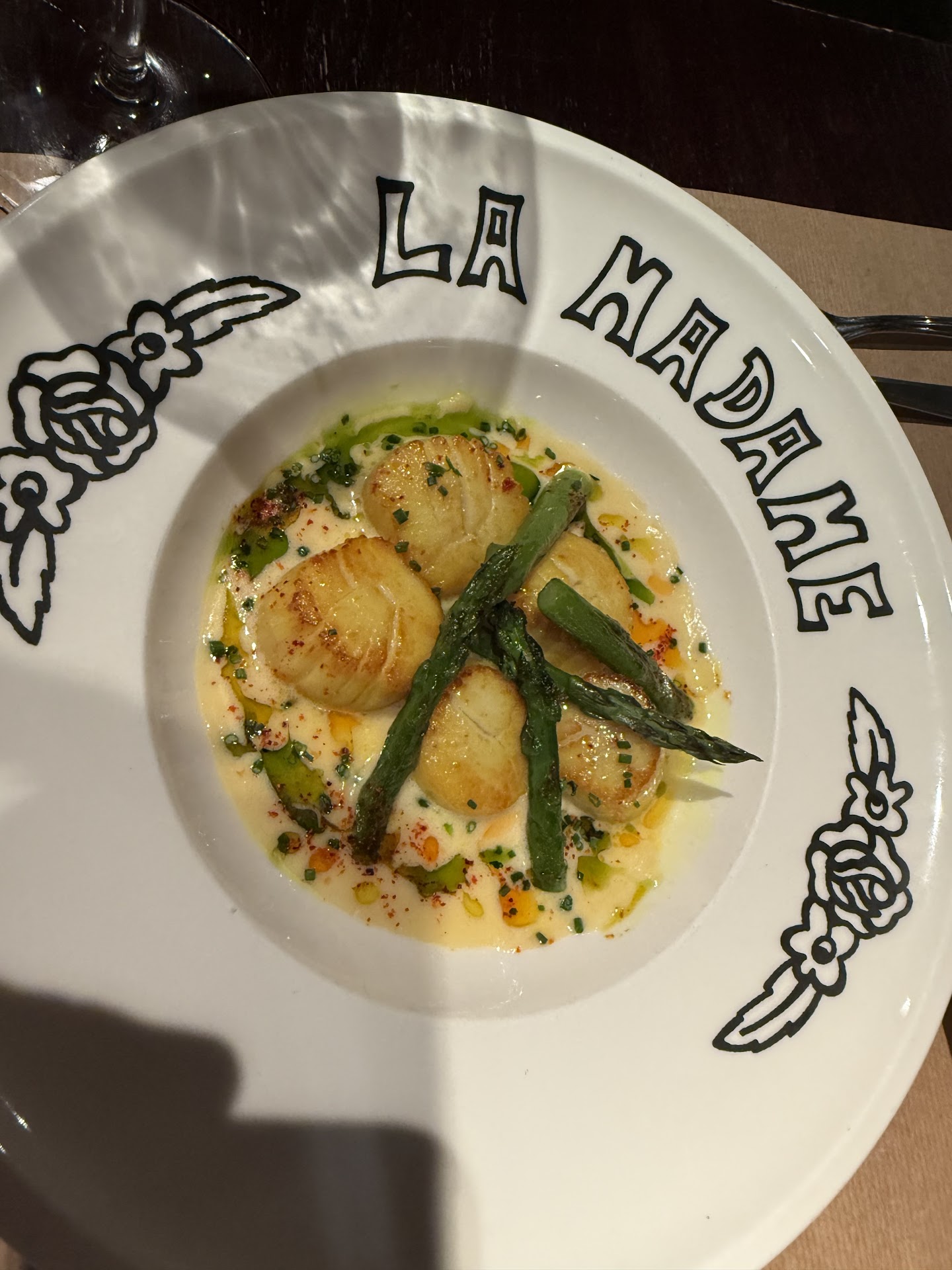 Read moreHugely disappointing night at La Madame. Firstly, it took a long time to even be acknowledged when we arrived and then a while to be seated. Service can be slower in Spain so I hoped that would be the end of the issues. Sadly it was only the beginning. We were seated and placed it orders. The starters were fine, but the carbonara egg was seriously underseasoned. I found where the salt which should have been on that dish later. Before out main courses arrived, we tried to order wine to accompany the mains. Tried is the operative word, as, sadly, it never appeared. It did, though, make it's way onto our bill, so that was nice. The scallop main was very good; five nicely sized scallops on a bed of an Asian inspired sauce. The bomba rice, on the other hand was where all the salt from the first course had ended up. Basically, it was the Bay of Biscay concentrated in a bowl. Even trying to pay was painfully slow and we made the choice to head out to try and find desert anywhere else. La...