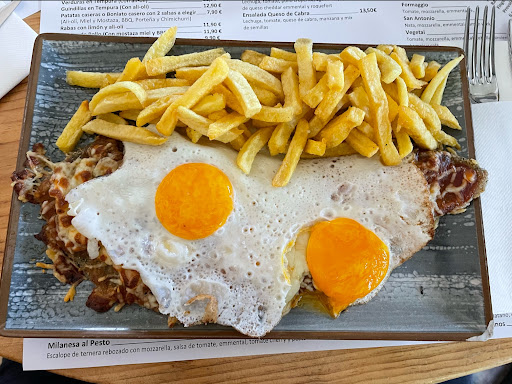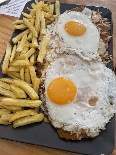 Ración de verduras en tempura. Muy ricas. 9,9€ 2 empanadas de carne y 2 empanadas caprese, todas ricas pero sobretodo recomiendo la caprese. 3,6€ cada una. Recomiendo compartir cada una entre 2. Milanesa caballo (lleva huevos fritos encima) muy rica, la recomiendo. 16,9€ Milanesa formaggio (de varios quesos) muy ricas también. Compartimos las 2 milanesas entre los 5 adultos y quedamos mas de a gusto. 16,9€ Se acompañan de patatas o boniato frito a elegir recomiendo boniato.