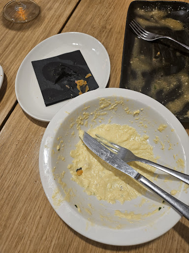 Read moreHabíamos decidido comer en este sitio porque había visto buenas reseñas y que pertenecía a verdaderos italianos, y bueno. Pedimos un par de aperitivos, muy bien hechos (aperol spritz y negroni sbagliato) y muy ricos. El problema ha sido la comida. Pedimos unas croquetas y una arancini de entrante, que se sirvieron en pequeños platos sobre unas servilletas. Pues bien, tuvimos que quitar la parte del rebozado que estaba en contacto con la servilleta, porque se había quedado pegado y no había manera de quitarlo. Pedimos también unos spaghetti carbonara y era básicamente una sopa de huevo cuajado con algo de panceta por ahí. La pasta estaba sobrecocida, muy muy pasada del punto ideal. Un plato sosísimo, mal hecho, insípido y que no es para absolutamente nada parecido a una carbonara de verdad, que tampoco es tan complicada de hacer. Pedimos también unos fetucini, bastante correctos, y unos raviolis, que estaban bien, pero quizá algo fríos y la cantidad un poco escasa en relación al precio. En resumen, una decepción, en general. Esperábamos mucho más y ha acabado siendo un bajón. La Tagliatella está a la vuelta de la manzana. No recomiendo normalmente ir a cadenas, pero en este caso...