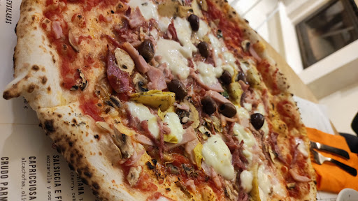EDIT: Llevo varios pedidos con ell@s, y cada vez estoy más reacio a pedir. El problema no es el establecimiento en sí, ya que sigo considerando que la cantidad, el sabor y la calidad son excelentes. Sin embargo, el servicio de envío a domicilio deja mucho que desear. Recomendaría pedir para llevar, ir a recoger el pedido o comer en el propio local si es posible, porque a través de Uber (ya que Glovo no hace envíos a mi dirección) no resulta rentable: en varias ocasiones la pizza ha llegado en mal estado o destrozada. Además, en una ocasión el repartidor fue a recoger la pizza y le pidieron que esperara +30 minutos, lo cual me pareció exagerado, especialmente cuando el pedido aparecía como "recogiendo tu pedido". El tiempo promedio de entrega es de +1hr, y no recomiendo pagar el envío prioritario o Uber Pro, ya que el servicio seguirá siendo el mismo, pero con un recargo significativo (+5 € en la mayoría de pedidos de 1-2 pizzas). A pesar de pagar el extra, la pizza SIEMPRE llega fría... telita.