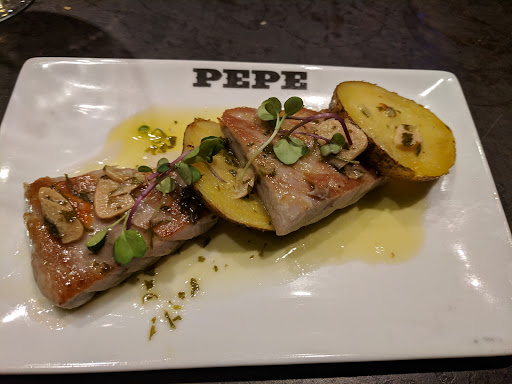 Arrived at Bar Pepe and sat outside during the World Cup. After 20 minutes the server came to take our orders in a rush-which I get because tiger place was going off for WC.I ordered the shrimp skewers (I’m American) in English. The server told me they were out. I pivoted to the calamari-my second choice.