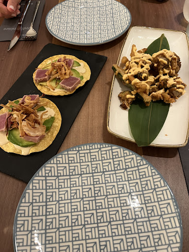 Read moreSi bien la calidad general de los platos es buena, la actual propuesta del menú presenta una fusión de cocinas que resulta algo confusa cuando se busca una experiencia Mediterránea. Platos como el Tataki de atún, la mahonesa de wasabi, las gyozas, el salmón yakitori (todos de origen asiático), o los tacos mexicanos y el ceviche (latinoamericanos), junto con la crema de Camembert (francesa), se alejan significativamente de la auténtica dieta mediterránea. Es crucial recordar que la dieta mediterránea es un patrón alimentario específico y reconocido globalmente por sus numerosos beneficios para la salud, centrado en productos frescos, locales y de temporada: aceite de oliva virgen extra, verduras, frutas, legumbres, cereales integrales, frutos secos, pescado, y un consumo moderado de lácteos y carnes blancas. No tiene ninguna relación con la gastronomía asiática o latinoamericana. Creemos que el restaurante ganaría mucho al reafirmar su identidad culinaria y apostar por una oferta más coherente y auténtica de la gastronomía mediterránea. Esto no solo aportaría claridad al cliente, sino que también permitiría destacar los valores de salud y tradición asociados a nuestra...