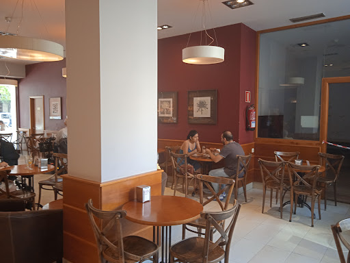 Local muy grande que une panadería y repostería de venta al publico con cafetería donde puedes disponer de mesas en el interior y en el exterior (bajo unos porches, por lo que es cubierta).