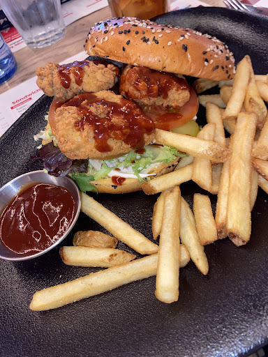 As we also expected, the food was fine and just the right meal to take a break from the very rich flavors and similar dishes we've been having in the meals prior. The portions were large, I ordered the chicken sandwich with barbecue sauce in which the fried chicken was oddly served in nugget like pieces. Though I liked the fact that it was not too greasy. My dad enjoyed his...