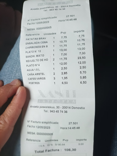 Read moreDía 1/mayo/2022: Acabamos de salir del restaurante sin comer: Hemos llegado a las 15:30, una familia de tres personas, y nos han dicho que la espera era de unos 30 minutos para comer. Hemos decidido esperar tomando un txacoli en el bar. A los 30' preguntamos por nuestra mesa y nos responde el mismo camarero que imposible, que la cocina acaba de cerrar y "le habremos entendido mal". Relleno la hoja oficial de reclamaciones del Departamento de Comercio, Consumo y Turismo n° 778134 que me proporcionan en la recepción del hotel y que dicho camarero se ha negado a completar.