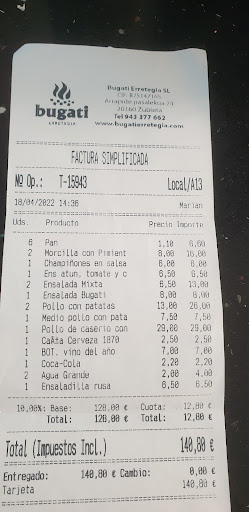 El pasado viernes nos invitaron a cenar a Bugati, que resultó ser un lugar ideal para ir con niños por dos motivos: el primero es que tiene un amplio espacio para jugar, y el segundo es que la comida es toda natural (es decir, los pollos son comprados frescos del día y cocinados allí, así como las verduras que son compradas de caserío), especialmente el pollo que está asado al horno utilizando madera de encima y con la salsa de la casa, no llevando nada de grasa y resultando muy ligero.