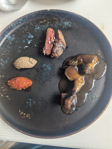 The cochinillo, or suckling pig, was outstanding, featuring juicy meat with a crisp, golden skin, served atop a subtle sauce and accompanied by velvety pureed potatoes. However, the true star of the evening was the pichón (pigeon). The breast meat was expertly grilled, achieving a perfect balance of tenderness and flavor. The dish's complexity was further enhanced by the use of the pigeon’s organs in a light and airy mousse, while the legs were braised in a richly flavored sauce. It came with a little bit of a tomato/apple compote which just had an excellent balance of sweet and acidity. This dish alone is reason enough to return to Zazpi.