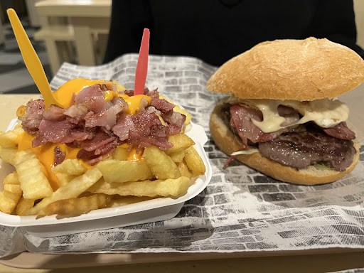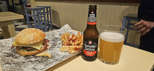 Read moreDe verdad que nos ha sorprendido este pequeño local. Las hamburguesas vienen en un pan como de bocadillo, tostado y crujiente. De precio y sabor están muy muy bien. Apetece probar todas. Las patatas saladitas y con queso. Nos ha parecido muy original el sitio, con ambiente rockero.