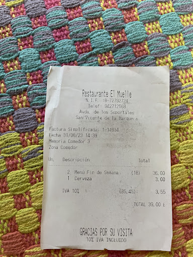 Read moreBuenos días, El pasado 31/08/2023 visitando el pueblo de San Vicente De La Barquera, decidimos parar en este restaurante para almorzar. Pedimos dos menús diarios. Al comenzar a comer, notamos que la paella de “marisco” era arroz recalentado con un par de gambas congeladas!!, De segundo plato pedimos merluza, al probar el primer bocado nos dimos cuenta que era congelada, se lo dijimos a la camarera (hija del dueño) y se las llevo a la cocina. Escuchamos como la cocinera nos “increpaba”, ignorando que la estábamos escuchando pues nos dieron una mesa dentro del restaurante delante de la barra pegada a la cocina. Mi madre (una persona mayor), viendo la nefasta calidad que ofrecían de comida y tras escuchar a dicha persona, no quiso comer nada más, yo comí un segundo plato y nada de postre. A la hora de pagar, me cobraron dos menús completos, comenté a la camarera que eso no debía de ser así ya que mi madre sólo había comido un primer plato debido a su mala calidad. Pedí por favor, hablar con el dueño del restaurante que estaba en la terraza. Este “Señor” fue muy poco profesional, un mal educado y un prepotente!!!. Mientras le hablaba muy educadamente, no paraba de sonreír de manera irónica. Pagué mi cuenta y nos fuimos de ese horrible lugar, con personal no cualificado. NO RECOMIENDO A NADIE QUE SE PARE A COMER O A TOMAR ALGO EN EL RESTAURANTE EL MUELLE. San Vicente De La Barquera está lleno de restaurantes que ofrecen calidad en sus menús y amabilidad al turista. Un...