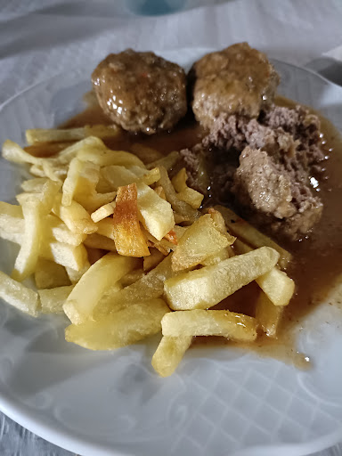 🥩 En la carta brillan los platos de cuchara y las carnes de ganadería propia: cocido montañés, caricos estofados, albóndigas caseras y estofado con patatas fritas o chuleta y chuletones que llegan a la mesa con el punto justo y el sabor de siempre. También hay sitio para entrantes como los pimientos rellenos o ensaladas sencillas. Y postres de los que ya no se ven: flan, arroz con leche, tarta de queso… Todo casero, todo abundante, todo sabroso.
