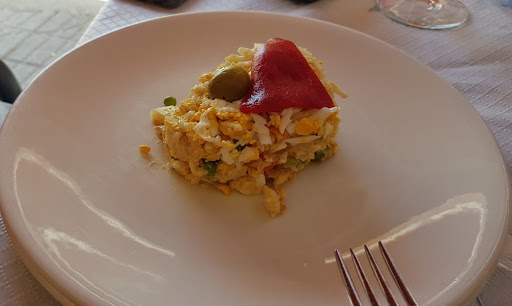 Reservamos mesa con semanas de antelación, y a última hora nos preguntan si queremos carta o menú, sin especificar platos ni precios. Optamos por la carta, la cual tenía a duras penas 5 entrantes, 3 platos principales y 5 postres, aunque al menos el precio era aceptable. El problema es que al igual que el precio era reducido, las cantidades lo eran aún más: Un plato para compartir de ibéricos, que tenía 8 lonchas de jamón y 8 rodajas de chorizo, y otro plato para compartir con solo 8 langostinos. Los platos principales, en nuestro caso el entrecot, llevaban un acompañamiento no especificado en carta, que constaba de bechamel, frutos secos, frutos rojos, canela y otros componentes que frente a una alergia podrían ser peligrosos. Además de que no estaban bien condimentados y estaban sosos. Directamente ya ni pedimos postre, así que no tengo comentarios frente a eso.