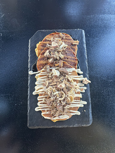 la masa de los crepes, gofres y tortitas también la hacen ellos y no puede estar más buena y esponjosa. El propio sirope que le echan a las tortitas TAMBIÉN es artesanal y con una variedad de sabores increíble. Los TOPPINGS son infinitos tienen hasta para echarle twix o huesitos encima de las tortitas.