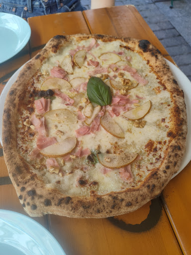 Pedimos para compartir una pizza Sficiosa, cambiando la panceta ahumada por prosciutto. La pizza es más fotogénica que sabrosa. Aunque la combinación de pera y queso azul nos gustó. Apenas llevaba nueces, el prosciutto se veía a km que era jamón cocido de blister y sobre todo, la decepción fue la masa. Viendo las fotos, lo que anuncian y el horno que tienen en el local pensabamos que sería masa napolitana con su aireado y fermentación y nada más lejos de la realidad. Era masa tipo pico como en cualquier pizzería de barrio, aunque eso si, más fotogénica.