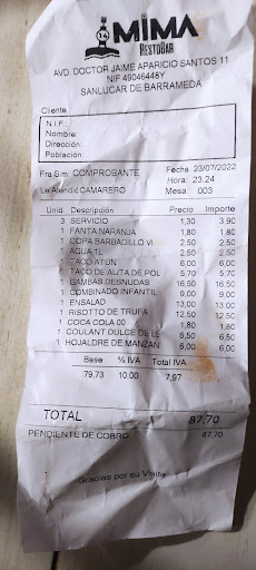 Read moreCuestión complicada que te pidan alguna recomendación para tapear en Sanlúcar. Yo, que soy de los que ven como el sol se pone de la Punta de Malandar a Chipiona (¡vamos, que estoy todo el año viniendo!), lo primero que suelo hacer en época estival es probar los sitios nuevos que han abierto recientemente -además de comprobar que mis prefes continúan igual que cuando los dejé-. Total, este viernes le ha tocado al Mima, del que ya me habían hablado bien familiares míos. Un taco de pollo y otro de atún picante (abundan los tacos este año por la broa del Guadalquivir) que estaban exagerados de buenos, acompañados por una tapa de ensaladilla de atún que no se quedaba atrás. Para acabar, y por recomendación del personal (destilan simpatía y naturalidad, se nota que son de aquí) una corvina al amontillado que estaba para sacar bajo palio al cocinero... Le hubiese pegado a continuación a una de las burgers que anuncian en la carta, pero mi santa pegó un pasito atrás y decidimos dejarla para otra ocasión, que la habrá. En resumen, para mí el mejor sitio de los que han abierto este año del V Centenario de la Vuelta al Mundo de Elcano (a Magallanes se lo jalaron en las Filipinas). La relación calidad/precio me parece muy lograda y el servicio me pareció espléndido, muy agradable. Creo sinceramente que se merecen una mejor ubicación (un poco más céntrica no estaría mal, aunque las vistas que tiene son muy bonitas) y sobretodo, perdurar en el tiempo, que tienen razones para conseguirlo.