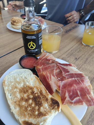 Estuve desayunando en la terraza desdebla cual se puede pedir sin necesidad de entrar dentro del local. Tienen una buena variedad de panes con opciones para untar y lo puedes acompañar de un buen café todo ello servido con prontitud y de manera correcta y eficiente. Aparcar es fácil pero hay que entrar por la calle justo antes y acceder a dos zonas (muy visibles) para poder aparcar el vehículo. Aparte esta pegadito a un Mercadona por si necesitas comprar...