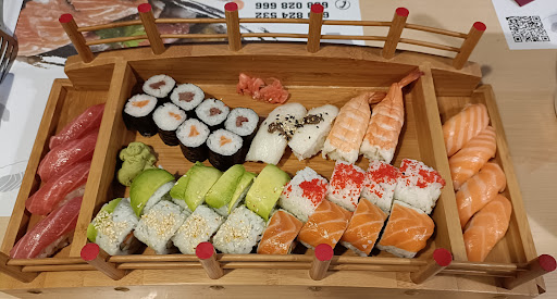 100% chino / 0% japonés. Si quieres comida china es tu sitio, pero no recomiendo el sushi. A pesar de que el pescado con el que está preparado es bueno por el marco en el que nos encontramos, el arroz del sushi es malo. Suelto, seco, sin sabor y con cierto regusto extraño. Además tienen combinaciones cuestionables como la que consiste en añadirle una pasta de trufa de fuerte sabor al nigiri de pez mantequilla, la cual además cae en la bandeja e inunda también otras piezas de sushi. La decoración de los platos sería lo más destacable. La decoración del local es feucha, con la cocina apenas separada del comedor por unas estanterías llenas de todo tipo de cosas. La limpieza es bastante cuestionable, los zapatos se pegaban al suelo y las cartas con el menú estaban pegajosas. Probamos el pollo teriyaki, el cerdo agridulce y la bandeja de 36 piezas. Es el único japonés de Sanlúcar y no lo recomendaría.