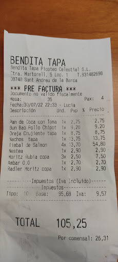 Pero lo que realmente destaca en Benditatapa es la presencia del dueño. Su pasión por la gastronomía y su dedicación para asegurarse de que cada cliente se sienta especial es evidente en cada detalle. Se asegura de que todo funcione sin problemas y siempre está dispuesto a escuchar comentarios y sugerencias. Su presencia agrega un toque personal y familiar que hace que te sientas parte de algo especial.