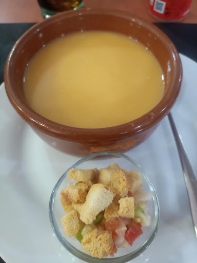 Read moreEl menú deja muchísimo que desear, hoy tenían 2 ensaladas de primero y arroz 3 delicias. El arroz 3 delicias era literalmente de bolsa descongelado al microondas. La carne de segundo la pedí con verduras de acompañamiento y nuevamente de bolsa descongelado al microondas. De remate los trabajadores fumaban dentro del local... medidas covid muy justas.