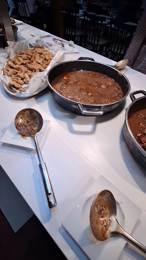 Read moreEn una palabra "espectacular". Mis expectativas se superaron, aunque iba con algo de inseguridad tras leer algunas reseñas de TripAdvisor, pero nada se acerca a esas reseñas tan negativas. Gran variedad de platos, buena presentación en el buffet, hablaré de los que he podido probar (no por falta de ellos, si no por no explotar comiendo). Los montaditos variados, estupendos como aperitivo, junto con las cañadillas, almejas y mejillones, así como las navajas y gambas a la plancha (he visto reseñas que se quejan de que las navajas tienen arena... bueno alguna pero hay que ser comprensible que con tal volumen de comida es normal), por lo demás ninguna pega. El pulpo guisado, increíble, sabroso y tierno. Las galtas, una carne espectacular, tierna, así como el codillo. Los callos, en su punto, cocinados con garbanzos y un punto óptimo de picante (al menos para mí, en esto cada cual tiene su gusto) Arroz caldoso con marisco, tierno sin estar pasado y riquísimo, al igual que la paella de marisco y la fideua, todo en su justo punto. La ensaladilla, pastel de atún, empanadas, y lacón, estupendo todo. De postre ya sólo me cupo un tiramisú y un trozo de tarta de queso, pero la variedad y pinta que tenía todo simplemente genial. Todo esto es una mínima parte de lo que se puede degustar, mi pareja, probó el bacalao con salsa de gambas y quedó fascinada. El precio, más que acorde a lo que se puede comer, en variedad y calidad, y hay que tener en cuenta que en el se incluye la bebida ilimitada y cafés, algo que no es común en otros buffets y es donde se incrementa la cuenta a la hora de pagar. Sin...