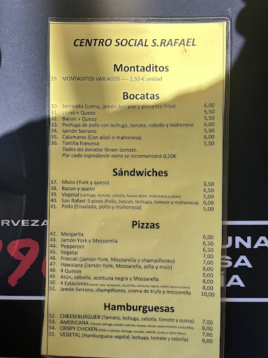 Read moreBueno no es una maravilla de comida, pedimos montaditos y estaban bien y la tortilla de patatas estaba muy buena, al ser un centro social no esperes ninguna maravilla y el ambiente pues familiar, en lo que le doy una buena nota es que en la parte exterior hay castillo hinchable y un parque para los más peques, eso me gustó mucho. El servicio...