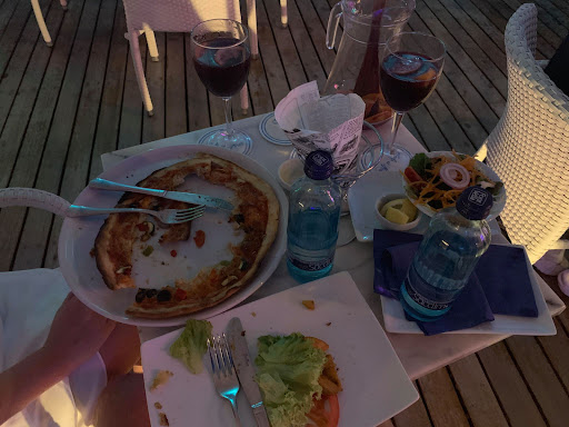 Food. The prices does not match the quality at all.. Usual Bravas for 22€?? Is it a joke..? We ordered Octopus leg for 32€ and Grilled Squid for 37€ which was too overfried and in addition Squid was bitter. I can understand that in such a touristic place like Ibiza, its affordable to have a high prices, but they should meet the quality somehow.. Drinks. Ok, let’s assume that it’s a place just for taking a drinks only and enjoy the sunset. But again.. Should the “Mojito Cafe Del Mar” (Name of The most iconic bar in the world) contain granulated sugar laying down on the bottom of the glass..??? Another “Ibiza Sunset” was also so-so, too sweet, like if it were made of syrup and ice only.
