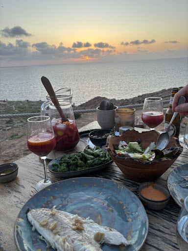 Wow! This place is absolutely stunning! We booked a table in advance requesting a table on the terrace outside, however we were given one just within the covered restaurant which wasn’t a problem as the view was still just as good. It was 8pm and still scorching hot so bear this in mind if you’re not one for being in the heat!! Our waiter was very pleasant and welcoming. We started with the olives, bread and aioli and we also had the mussels and the babaganush which were all delicious. We waited nearly an hour for our mains. Now usually in any other restaurant this would have been an issue, however the ambiance and just general feel of this restaurant with its stunning views of the ocean meant we were in no hurry! We sat and watched the sun go down enjoying our wine and people watching the different people, including families with small children enjoying their evening. The place was buzzing, people were literally queuing at the door waiting for tables. We were worried we were going to be rushed out as we were told when booking it’s a 2 hour slot, luckily this was not the case. We finally got our mains, we had the catch of the day sea bass which was lovely although we felt a little pricey at €60 a head (the price is not on the menu) It does not come with any side dishes either so we ordered the padron peppers and Pattatas bravas which were also very tasty. We enjoyed our meal and sat waiting to have our table cleared and we also wanted to order some cocktails. Finally managed to get our waiters attention, to ask for the cocktail menu, he cleared our table and said he would grab the menu. 15 minutes later still no menu, so we asked another waitress who got the menu straight away. Cocktails were Devine! Literally cannot fault the food/drinks at this restaurant. Would have given 5stars had the service matched. Like I said, we didn’t mind the wait for our food and could have complained if we felt we needed to. The staff are all very pleasant and all very busy! Would suggest they get more staff to ensure everyone gets the service to match the quality, and the price of the food and drinks they provide. We will definitely be back and would...
