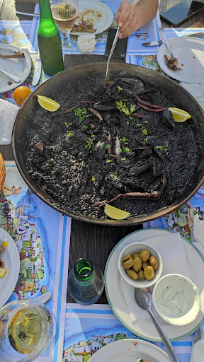 Soooooooo disappointing. We went to this restaurant accidentally as the restaurant in front was closed. In the beginning we were waiting at the queue to have a table, which was normal as the restaurant felt busy. Soon many tables started leaving, there were at least 4 available, but the waiter was keep ignoring us. Finally we asked her if we can sit and have some drinks if they're too busy to place food order. After around 30 minutes the waitress came to take the food order, the food arrived quickly. The food was really average, we ordered Fritz Dr pulpo, which tested liked smoked pepper as they clearly added too much of it, then lamb, which was tiny and waaaaay overcooked and then black rice, which was totally overcooked and didn't have any flavour. We left 75% of the rice and the waitress didn't even ask if it was something wrong with it, she ust took it from the table. Most of the time we had go to the bar to ask if the waitress can come. Never, never again and I highly DONT...