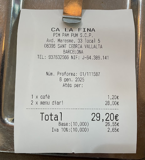 Read moreHace unos días de camino a la costa Brava quisimos hacer una parada para comer y orientados por la buenas opiniones elegimos Ca la Fina. Acierto! Desde el primer momento hasta la salida la atención fue super amable por parte de los camareros y la señora que nos llevó el postre. Del menú de fin de semana comimos ensalada de tomate con atún y espaguetis con butifarra de primero, pechuga de pollo y galtes de porc, para el peque hicieron pollo rebozado con patatas el cual probamos y estaba muy bueno. De postre tiramisú casero y arroz con leche, todo riquísimo!! Y el tiramisú casero diría que es de los mejores que he probado. Sin duda volveremos, calidad/precio excelente y no te quedas con...