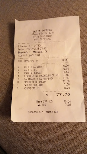 Read moreVery nice menu and place, but I have to agree with the reviews that mention a high price to quality ratio. After the change of these last months, the prices increased too much and service didn't keep up at the same pace. The menu is simple and dishes are good, portions are slightly too small. Bravas are delicious, but way too greasy for my taste. Large wine selection. The outdoor terrace offers a very good atmosphere in the city center. Still, service is frenetic with the many tourists, it's becoming very slow. Could be ok for a special occasion with a full meal. I love the Gin Tonic that Diego makes,...