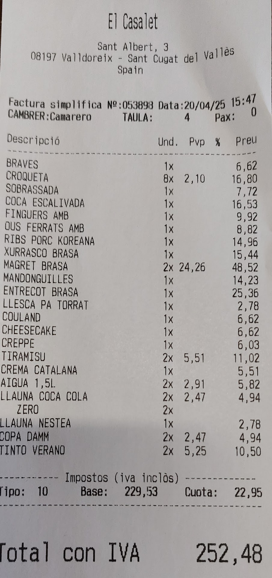 What do you like to do on your weekends? When I'm not travelling, I usually like to chill. Chilling can mean staying home with my family if the weather isn't great, or walking around in the city and maybe grabbing a bite on my way. 😀 That does not mean driving or taking a train 🚆 to go to one of the numerous towns around Barcelona, like Sant Cugat. Yet, I don't always have a choice. And a few weeks ago, we were invited to gather with a lot of friends at a restaurant in Sant Cugat, precisely, called El Casalet (@elcasaletvdx). 😅 Why that place? Cause kids can play. OK, that sounds good when you have kids cause they'll be entertained. That also sounds scary cause that means there'll be lots of them! 😱 In this case, that was great. 👍 There's a huge enclosed square in front of the venue and we barely saw the kids who spent the day playing soccer ⚽. 🥳 The place itself, despite a big terrace, doesn't look so appealing. But spring was finally springing so we really enjoyed being outside. ☀️ About the food: the place offers a lot of options, including some great tapas like their really good bravas, and main courses. The overall quality and taste was good but not even. There were dishes that were amazing, others just ok. What was the most disappointing was the dessert: I ordered some braised banana with dulce de leche gelato that sounded marvelous 🤩... but they had to pour some dark chocolate over it, which made the whole treat taste like chocolate and only 🍫... Given that we had a few drinks, the €25-30 we paid sounded fair. A pity they didn't allow us to split the bill... 😠 The venue is located very few minutes from the train station, so about 45 minutes from our place: a solid option for big parties with kids close to Barcelona. 👍