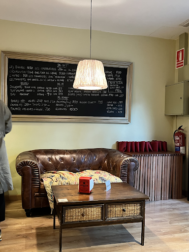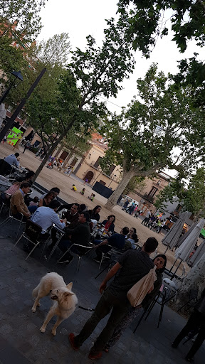 El restaurant en si és molt bonic per dins. No és un bar d'estil cafeteria, sinó un restaurant real. Els banys també estan sempre nets i ben cuidats, cosa que agraeixo. Hi ha taules a l'interior, així com una zona d'estar per a la gent que acaba de venir a prendre una copa de vi o cervesa perquè pugueu descansar i xerrar. Encara no sé si tenen aire condicionat a dins. També hi ha seients a l'exterior a la terrassa. És un lloc fantàstic si tens un gos o si tens nens, ja que la plaça Barcelona és just a l'exterior.