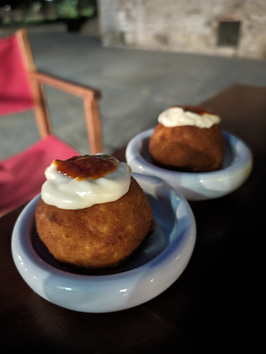 Croquetas: el cocinero nos ha asegurado que eran "caseras, muy muy buenas". Digamos que nos ha quedado claro que eran caseras, porque la forma era de un torpedo literalmente, claro indicador de que no son congeladas (que suelen ser redondas y perfectas). Además, eran un mazacote. Vaya, incomibles.