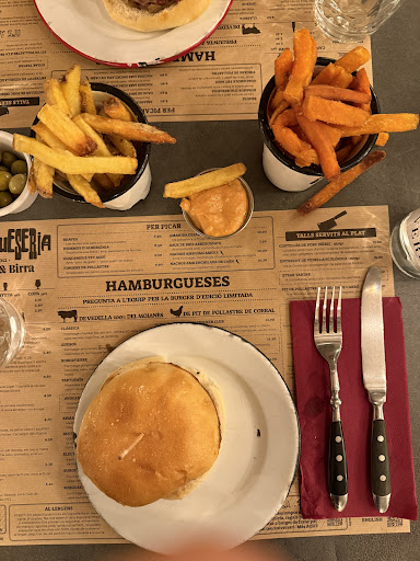 Delicious hamburgers! This is a pet-friendly place and we were able to sit outside with our dog (always ask before sitting, as there might be people waiting for a table). They offered to give her some water and that was nice. Service was fast and friendly, we tried the Bestial and the Burguesa with XL fries. It is a well-served order of fries, so if you're not that hungry stick to the single order. The hamburgers tasted really good and the meat was cooked to the desired point, a feat not achieved in many places. Definitely recommend and would go back! The toilets were clean and well stocked. There's also a very central paid parking lot right underneath, so it's really convenient if you also want to walk...