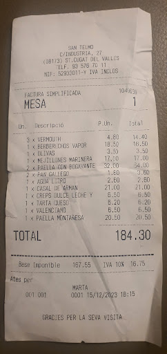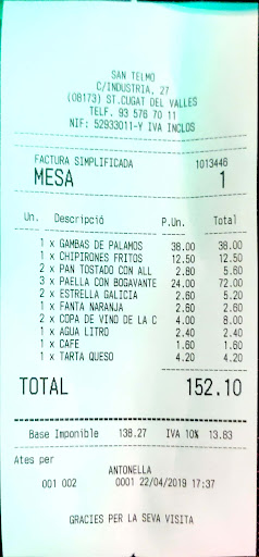 Read moreOrganizábamos en casa una celebración familiar muy especial y decidimos confiar en la comida de San Telmo. Ya nos había fallado en una ocasión (paella cruda), pero todo y así, decidimos darle una segunda oportunidad. El resultado; decepción absoluta. Encargamos telefónicamente dos paellas de carne dado que había alérgicos al marisco y nos llegaron paellas de marisco. Al reclamar el fallo por teléfono, nos dijeron que el ticket estaba mal (ticket que hacen ellos) y que la solución era pagar nuevas paellas. No recibimos ninguna disculpa y la única solución que nos daban era volver a pagar las paellas. No espero disculpas por su parte dado que ni se dignaron a hacerlo en el momento de la reclamación y después de ver las respuestas a las criticas negativas, creo que demuestran el poco respeto hacia el cliente que tienen. Simplemente espero que si lees esta reseña, te plantees muy seriamente si quieres encargar comida a una empresa cuya experiencia del cliente no cuenta; sino el dinero que te puedan sacar. Ten claro que si fallan, no será culpa...