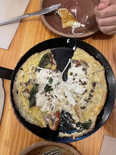 Pero el principal motivo de esta mala valoración es su falta de respeto hacia su compañera, que además era un encanto y toda una profesional. Desde su aparición (el encargado) mantuvo una actitud ofensiva y opresiva acusando a su compañera de una falta de profesionalidad cuando desde nuestro punto de vista era él quien carecía, no solo de profesionalidad, sino de educación básica y respeto, por su compañera y nosotros los clientes. Tirando los platos sobre la mesa sin saber de cuál era cada uno para que nosotros los fuésemos repartiendo a petición suya.