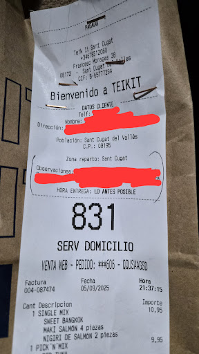 Per no tornar a demanar a domilici. És la 3a vegada que demano Teikit Sant Cugat a domicili i les altres dues cap problema però en aquesta enlloc de 30-40min han trigat quasi 90min. A part que la comanda ha sortit més tard del local, el transportista ha anat al carrer X però de Rubí i no de Sant Cugat com posa clarament a la comanda en dos llocs (població i zona de repartiment) i el codi postal que és de Sant Cugat. A sobre el missatger volia tenir raó que el carrer X és de Rubí quan és un carrer que existeix a Rubí i a St. Cugat, com molts carrers a tots els pobles. A part d'això truco quan havia vençut l'hora d'entrega a Teikit St. Cugat i em diu que ha sortit i que en 5-10min ho tindria a Rubí. Li dic que no és Rubí, és st. Cugat i diu que sisi, ok. Una vegada em truca el missatger al cap de 75min que està al carrer però a Rubí, truco per queixar-me a Teikit i l'únic que sap és demanar disculpes i que no es problema seu, que és del transportista. El transportista no és de Glovo, sinó que és contractat per ells mateixos. No és mostra gens comprensiu ni ofereix proactivament res a canvi per no perdre un client. Amb això us vull aconsellar que no torneu a demanar a Teikit St. Cugat i si ho feu, que sigui per recollir perquè el servei de domicili és nefast, dolents i gent professional. Jo igualment tampoc ni demanaré perquè l'atenció al client davant un error seu, ha estat molt...