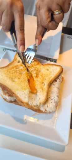 Si quieres probar un restaurante en Sant Cugat que tiene de todo, es este. De todo es desde tostadas, a arroces, pasta, platos combinados, carnes, bocadillos, crepes y un largo etcétera. Quizá por eso mi valoración es un 4, abarcar mucho es imposible. Quizá mejor concentrase en lo que pueden hacer bien. Nosotros fuimos para probar las crep (nombre del restaurante Crep Nova). Pedimos de primero, para compartir, un bikini Huevo Loco, muy correcto y bien hecho si bien el pan de molde es pequeño y justo, pero los ingredientes bien cocinados. Luego decidimos probar un crep, en este caso el Creppe Queso Jamón Serrano (tenéis foto de factura para ver precios). También muy bueno y correcto en calidad y cantidades que ofrece. Se nos ocurrió pedir un plato que siempre nos gusta probar y es el Steak Tartare. Mas que nada por saber que nivel y calidad podría tener. Le damos un 3 sobre 5. Pasable pero no de lo mejor pero correcto. Los postres: Creppe de azúcar y Creppe de chocolate Negro, los dos muy ricos. Tienen buena variedad de creppes de postre, por lo que se puede ir a media tarde a picar algo por ejemplo. El local muy grande y acogedor, disfruta del parking del mercado de Torreblanca pero suele estar bastante lleno. Bien para mesas grandes con amigos (después de pandemia) y sobre todo para disfrutar de una buena terraza exterior. Como digo situado en una buena zona con otras opciones para tomar copas después de la cena o antes o después de ver alguna obra en el Auditori. Bebida una jarra de sangría de lo mas normal, no sobresale, bien correcta. El servicio atento y correcto. Quizá faltaría alguna sonrisa de vez en cuando. Os aconsejamos probarlo y sobre todo agradecemos si os ha gustado un like o cualquier...