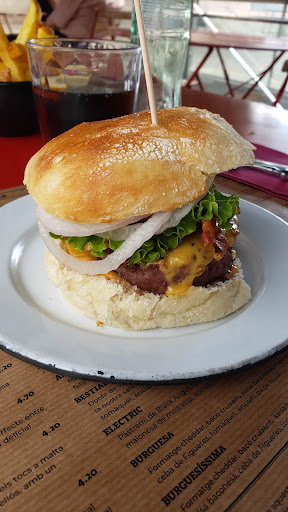 Delicious hamburgers! This is a pet-friendly place and we were able to sit outside with our dog (always ask before sitting, as there might be people waiting for a table). They offered to give her some water and that was nice. Service was fast and friendly, we tried the Bestial and the Burguesa with XL fries. It is a well-served order of fries, so if you're not that hungry stick to the single order. The hamburgers tasted really good and the meat was cooked to the desired point, a feat not achieved in many places. Definitely recommend and would go back! The toilets were clean and well stocked. There's also a very central paid parking lot right underneath, so it's really convenient if you also want to walk...