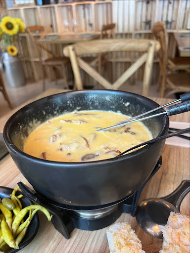 Read moreWe had a fixed menu for 25 euros per person.The meal was poor and the service was worse.The waitress came to take our drinks order and disappeared before everyine had ordered.The first course was goats cheese salad.One plate between 4.The fondue was served in a bread loaf which meant the cheese was cold and solid within 5 minutes.There were several loaves each with a different cheese but no one explained what they were.No desert or coffee This place is a real tourist trap.Mediocre food at...
