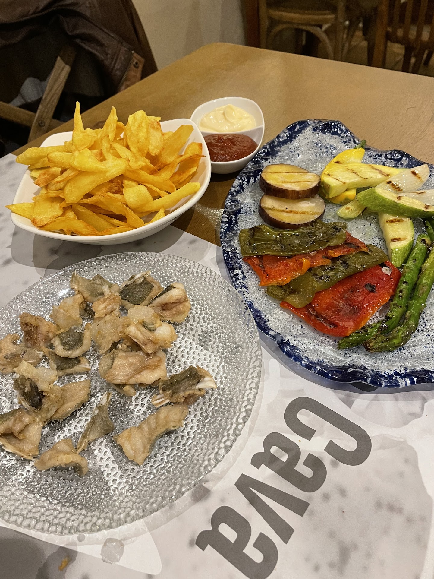 We were blown away by their patatas bravas. HOT and tasty. Actually, everything was fantastic. Squid was tender, fish was delicate and cooked perfectly, tomato bread was a jewel, their tiny fried fish with egg was sooo good.