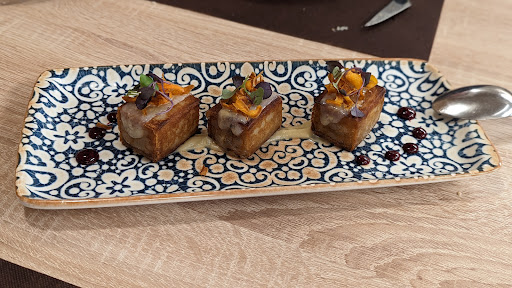Recentment vam tenir el plaer de visitar un restaurant al cor de Sant Feliu i vam decidir optar pel seu menú degustació. L'experiència va ser exquisida des del primer moment, amb una successió de plats deliciosos que no van deixar de sorprendre'ns. El menú incloïa una variada selecció, des d'una fresca amanida de burrata, canalons de ceps, broqueta de marisc, patates amb salsa de tòfona, musclos en tempura, fins a una delicada truita de carbassa. Cada plat era més deliciós que l'anterior, i en arribar a les postres, amb prou feines vam poder tastar el sorbet de mojito amb rom i l'excel·lent tiramisú, ja que estàvem completament saciats.