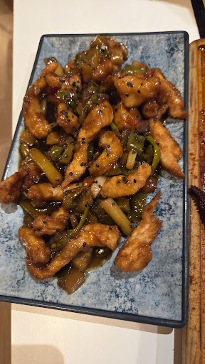 Pollo teriyaki con panko y salteado de verduritas: Este plato nos decepcionó. El pollo estaba muy frito, la salsa teriyaki era casi inexistente y el rebozado estaba demasiado pasado de fritura.