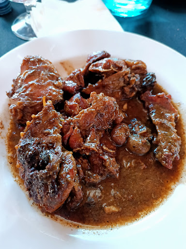 Las carnes las bordan, su entrecot tierno y con sabor, su solomillo que se deshace o su conejo a la brasa. Y los guisos, también ricos, que delicioso estaba el rabo de toro con trompetas de la muerte.