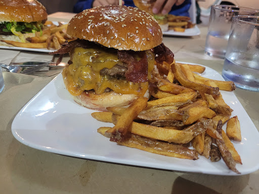 Tus hamburguesas estabas sosas , por más que le pusiste el queso que dices no tenían sabor , tuve que pedir algo que le den sabor y peso un picante que era una simple mayonesa de bote con ají en polvo , no. Comente de la papas Pero das papas quemadas , la camarera dijo que eran así por que le echan azúcar , pero las que nos dieron estaban quemadas , estaban amargas , una hambuyde 14 € no vale la pena , menos mal que lo pedimos la del mes q es 19 € , si las de 15 no tienen sabor , lo Mismo esperaba de la del mes , lo bueno que tienen una pizzería al lado y y otra de pizzas gigantes a una manzana , y eso sí que vale la pena , recomendación. Que los chef mejoren su paladar . Porque es bien raro que tengan comentarios 100 % positivos y no sea verdad , y mirar las fotos de las patatas , las que te dan son...