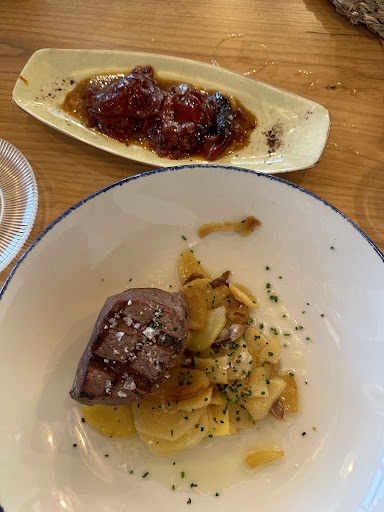 Read moreFuimos 5 personas por una ocasión especial y no pudo estar mejor la comida. Como entrante pedimos el dúo de ensaladillas (rusa y de merluza, riquísimas ambas), croquetas de jamón ibérico, quesos, morcilla y manitas y quisquilla, y buenísimas todas. También está muy rico el pan artesano acompañado de aceite. Como platos pedimos el arroz de papada de cerdo con verduras (lo único que no nos convenció), rabo de toro (muy rico, pero muy potente el sabor a vino en la salsa), paletilla de cabrito a baja temperatura con patatas panaderas (espectacular, súper sabroso) y solomillo de Angus con pimientos confitados (espectacular también, con mucho sabor). Como postres pedimos la tarta de queso cremosa (riquísima) y la nube de chocolate (tarta de la abuela, muy rica también). Es verdad que tiene un precio elevado, pero dada la calidad de la comida merece la pena. —————————————————————————— Hemos vuelto en otra ocasión y nuevamente un gran acierto. Para empezar pedimos pan artesano (imprescindible, blandito y crujiente a la vez), marinera con anchoa del Cantábrico (rica, pero no repetiríamos), ensaladilla de merluza (buenísima, un imprescindible, sabe realmente a lo que promete) y croquetas de jamón ibérico y de quesos con mayonesa trufada (no hubo acuerdo de cuáles están mejor ya que ambas nos encantaron a todos). Seguimos con una pinsa de tomate, jamón de pato, pera, burrata y rúcula (muy rica, pero muy escasa de jamón y elevada de precio para su tamaño), steak tartar de vaca madurada (buenísimo) y tartar de atún rojo con cebolla tierna y miel de trufa (aún mejor que el de vaca). Finalmente pedimos carrillada de ternera con parmentier y chutney de mango (nos gustó, pero el mango casi no se aprecia) y solomillo de vaca con pimientos del piquillo confitados y patatas (el punto de la carne perfecto y los pimientos buenísimos, además de notarse mucho el sabor del solomillo). En esta ocasión no pudimos pedir postre, pero todos los que hemos probado otras veces han sido un acierto. Seguiremos volviendo sin...